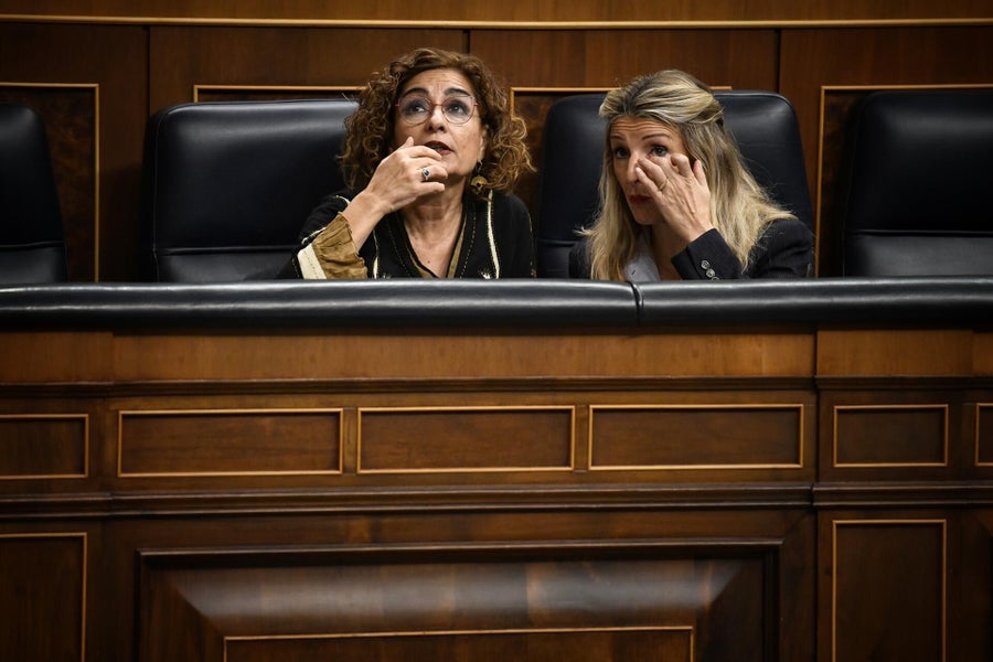 (I-D) La vicepresidenta primera y ministra de Hacienda, María Jesús Montero, y la vicepresidenta segunda y ministra de Trabajo y Economía Social, Yolanda Díaz - Fernando Sánchez - Europa Press